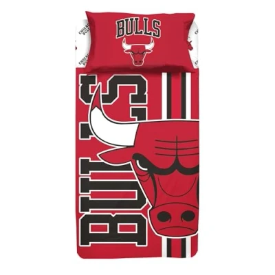 hermet NBA Single Bed Sheet Set, Top Sheet, Fitted Pillowcase, 100% Cotton, Bulls, Official Product