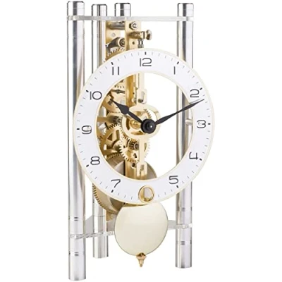 Mechanical table clock 8-day skeleton movement Made in Germany Arabic numbers on the dial Hermle Basic shape: triangle