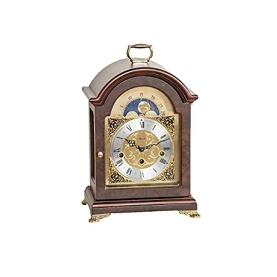 Hermle Table Clock, Wood Glass Brass, Brown, Kleine
