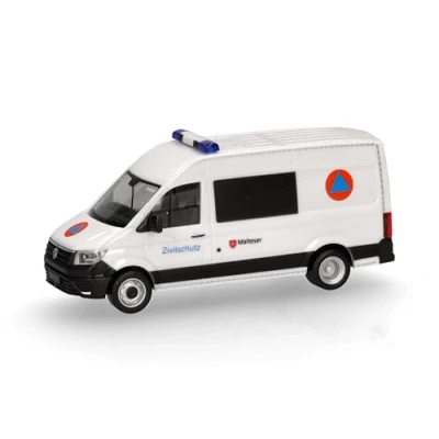 herpa 097963 Model Car Volkswagen (VW) Crafter Half Bus High Roof Maltese/Civil Protection Miniature in Scale 1:87, Collectible, Made Germany, of Plastic, Multi Coloured