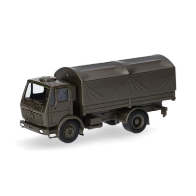 herpa 747073 Model Mercedes Benz NG 5t Flatbed Truck with Round Tarpaulin, 2 Axle German Armed Forces, Miniature Scale 1:87, Collectable, Made in Germany, Plastic Model, Multicoloured