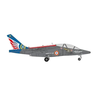 Herpa airplane model French Air Force Alpha Jet E 705 RR on a scale of 1 : 72, metal miniature with pedastal, building, collectors edition