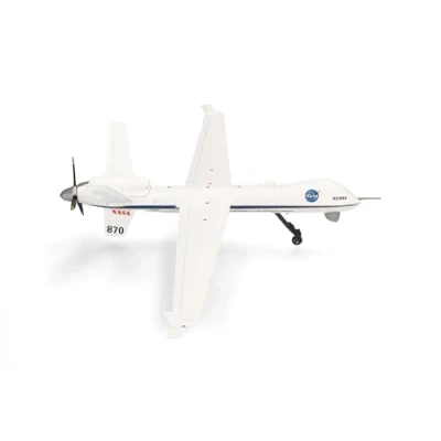 Herpa airplane model NASA MQ 9A “Ikhana, Armstrong Flight Research Center, Edwards Air Base, on a scale of 1:72, metal miniature with pedestal, collectors edition
