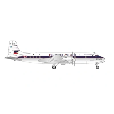 herpa airplane model Philippine Air Lines Douglas DC 6B PI C295 Magellan's Cross/Cruz de Magallanes on a scale of 1 : 200, metal miniature with pedastal, building, collectors edition