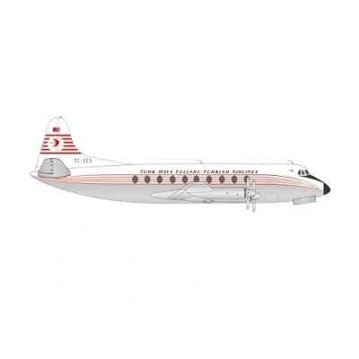Herpa airplane model Turkish Airlines Vickers Viscount 700 TC SES on a scale of 1 : 200, metal miniature with pedastal, building, collectors edition