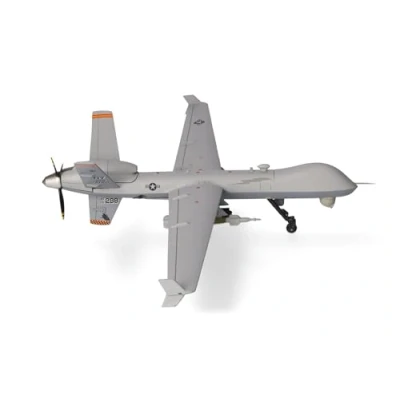 Herpa airplane model U.S. Air Force MQ 9A Reaper Block 5 New York National Guard, 108th Attack Squadron, Hancock Field, on a scale of 1:72, metal miniature with pedestal, collectors edition