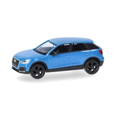 Herpa car model Audi Q2, on a scale of 1:87, plastic miniature, made in Germany, building, collectors edition, turbo blue