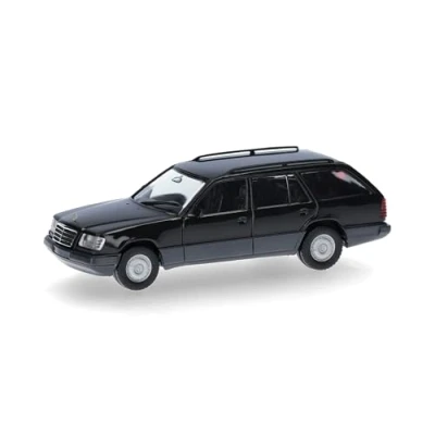 Herpa car model Mercedes Benz E Class t (W124), black, on a scale of 1:87, plastic miniature, made in Germany, building, collectors edition