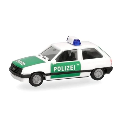 Herpa car model Opel Corsa a 2 doors, "police", on scale of 1:87, plastic miniature, made in Germany, building, collectors edition