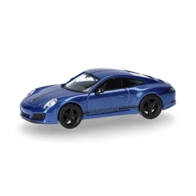 Herpa car model Porsche 911 (991) Carrera 4S, on a scale of 1:87, plastic miniature, made in Germany, collectors edition, sapphire blue