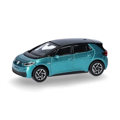 Herpa car model VW ID. 3, makena turpuoise metallic (black roof), on a scale of 1:87, plastic miniature, made in Germany, building, collectors edition