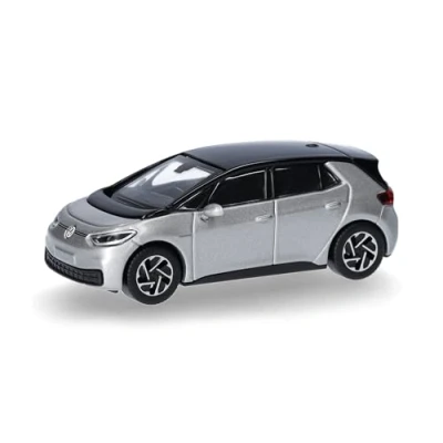 Herpa car model VW ID. 3, scale silver metallic, on a of 1:87, plastic miniature, made in Germany, building, collectors edition
