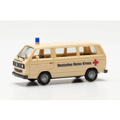 Herpa car model VW T3 Bully "Deutsches Rotes Kreuz" (Herpa BASIC), on a scale of 1:87, plastic miniature, made in Germany, building, collectors edition