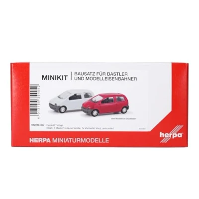 Herpa MiniKit Renault Twingo Set of 2 Vermehlo Vivo/Jaune Vanilla, Miniature Scale 1:87, Collectable Kit, Plastic