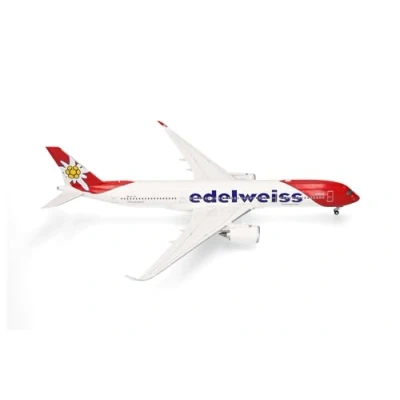 Herpa model Aircraft Edelweiss Air Airbus A350 900 HB IHF "Piz Bernina", miniature at 1:200 scale, collector's item, without stand, plastic
