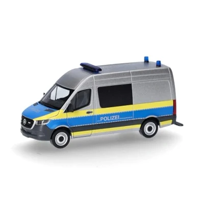 Herpa model car Mercedes Benz Sprinter 18 semi bus high roof "Police Schleswig Holstein", miniature in scale 1:87, collector's item, Made Germany, plastic
