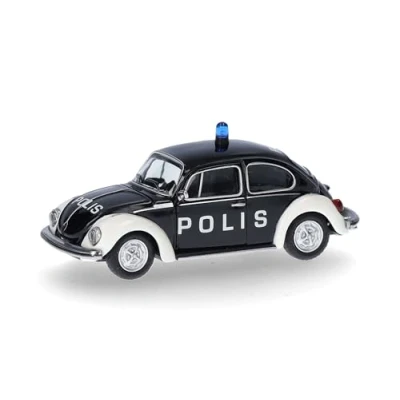 Herpa model Car Volkswagen (VW) Beetle 1303 "Police" (Sweden), miniature at 1:87 scale, collector's item, Made in Germany, plastic