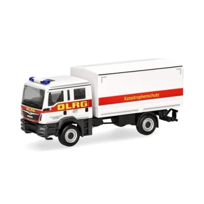 Herpa Model Truck MAN TGM MzKW "DLRG/Disaster Control", miniature scale 1:87, collectible, Made in Germany, plastic