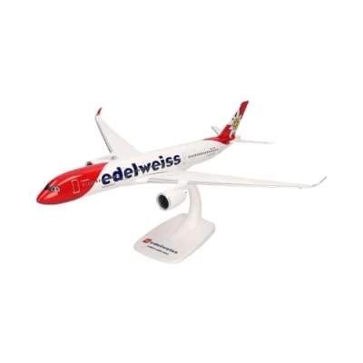 Herpa Snap Fit aircraft model Edelweiss Air Airbus A350 900 HB IHF "Piz Bernina", miniature scale 1:200, collectible, with stand, plastic