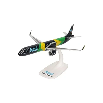 Herpa Snap fit airplane model Azul Brazilian Airlines Airbus A321neo “Brazilian Flag livery PR YJE " on scale of 1:200, plastic miniature with pedastal, building, collectors edition