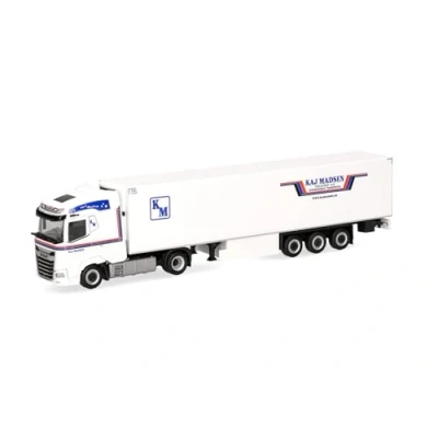 Herpa Truck Model DAF XG Refrigerated Box Semi Trailer "Kaj Madsen" (Denmark/Kolding), miniature in 1:87 scale, collector's item, Made Germany, plastic