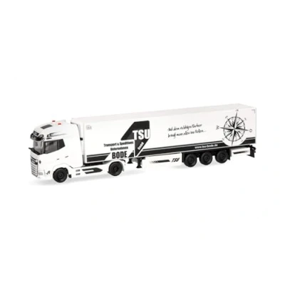 Herpa truck model DAF XG+ refrigerated box semitrailer "TSU Bode", on a scale of 1:87, plastic miniature, made in Germany, building, collectors edition