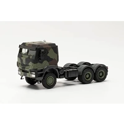 herpa Truck Model Iveco Trakker 6 x Tractor Unit Flecktarn Bundeswehr, Faithful to the Original in Scale 1:87, for Diorama, Building Collectible, Decorative Miniature Models Made