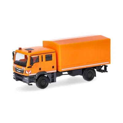 Herpa Truck Model MAN TGM MzKW (multi purpose vehicle), municipal orange, miniature at 1:87 scale, collector's item, made in Germany, plastic