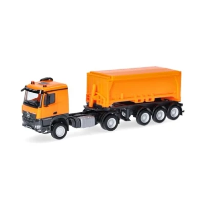 Herpa Truck Model Mercedes Benz Arocs Classicspace Excavation Container Semi Trailer, municipal orange/anthracite, miniature at a scale of 1:87, collectible, Made in Germany, plastic