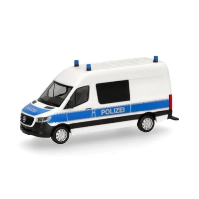 Herpa truck model Mercedes Benz Sprinter 18 halfbus highroof "Police North Rhine Westphalia/Fire investigators", on a scale of 1:87, plastic miniature, made in Germany, building