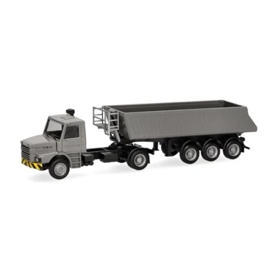 Herpa truck model Scania Hauber dumper semitrailer, on a scale of 1:87, plastic miniature, made in Germany, building, collectors edition, grey/yellow