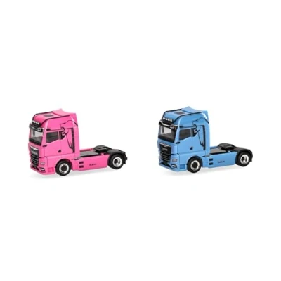 Herpa Truck Model Set WOMAN & MAN eTGX GX tractor units, 2 axle, light blue and pink, miniature at 1:87 scale, collector's item, made in Germany, plastic
