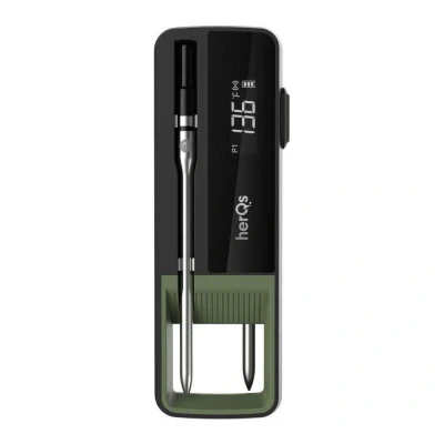 HERQS Double Max Wireless Meat Thermometer Black, Black,Green
