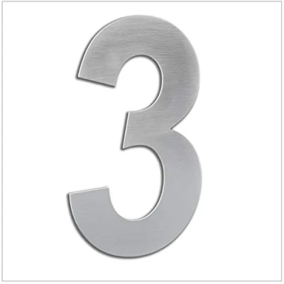 SELF ADHESIVE HOUSE NUMBER: 3 number for houses, hotel rooms, apartments, mailbox, streets or other applications. It can be used for multiple purposes. Made by stainless steel. MATERIAL: Made by AISI 304 stainless steel. Laser cut from a 2mm thick plate. The use of quality, rust-proof materials makes these adhesive numbers suitable for both indoors and outdoors. DESIGN: Useful numbers to identify houses or flats as well as for various other uses. 16cm high which makes them visible from far away. The numbers are made of stainless steel with a modern satin matt finish. Waterproof properties, perfect for outdoors. EASY INSTALLATION: Install your adhesive door number quickly and easily. No drilling required. Not recommended for installation on rough surfaces. Before installation, clean and dry the surface and heat the adhesive, then press firmly for 1 minute. QUALITY AND SERVICE: EVI is a European manufacturer with a long history of designing and manufacturing superior quality metal hardware. We like to take care of every detail, from production to customer service.