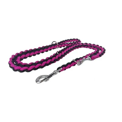 Herringbone woven dog leash. Adjustable heavy duty nylon leash, four strand braided training rope for pet walking. (Fuchsia/Black)