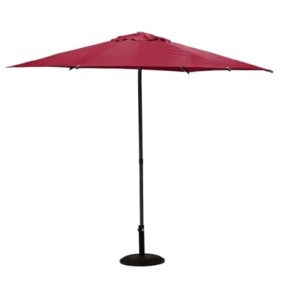 Soya Round Parasol General dimensions: diameter 270 cm x height 220 cm. Colour: Burgundy. Tilt system. The canvas is not water-repellent. Fade Resistance:Grade 4 UV protection: UPF 50.