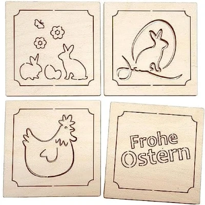 Wooden coaster for bottles or glasses Cut with high-performance laser, therefore very smooth edges Spring table decoration for Easter holidays STRONG AND DURABLE - Made from native woods such as beech and birch plywood 100% made in Germany, craftsmanship and quality from the Ore Mountains - all assembly work is carried out by hand, each item is tested for safety