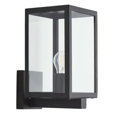 This contemporary HESTIA outdoor wall lantern light from Zink's range of outdoor lighting will transform your exterior wall into a feature.A contemporary glass panel box lantern with a stainless steel frame, these outdoor wall lights are both weatherproof and hard-wearing, designed to last against the elements.Exterior lighting provides increased safety and additional security while bringing a designer look to the exterior of your home at the same time.Outdoor wall lights are perfect for use in any outdoor space, such as exterior walls, front door lighting or garden wall lights creating an atmospheric lighting effect.Please note, this wall light requires 1 x GLS E27 (Edison screw cap) max 10W LED bulb (sold separately).An IP44 rating and steel body with a sleek black finish means that you can install this high quality outdoor lighting product safe in the knowledge that it will operate reliably, whatever the weather.Complete mounting and connecting accessories included.Requires 1 x GLS E27 bulb max 10W LED (sold separately).