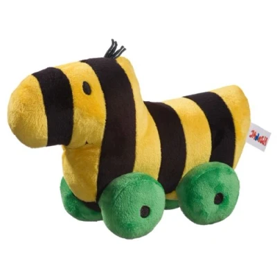 Dimensions: 27 x 11 x 17 cm. made of striped soft wool plush plush wheels in green. soft filling. . Colour: black/yellow with green, Manufacturer: Heunec