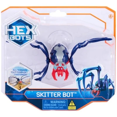 Crawl on any terrain: Enjoy the creepy-crawly movement of this autonomous robot insect as it crawls across any room, floor, or outdoor space The circular movement allows the Skitter Bot to travel across any terrain with ease Creepy Insect Design: This light up toy comes with LED eyes that can be seen in the dark, silicone limbs, and a plastic body, for a fun design sure to creep your friends out Batteries Included: 3 LR44 Batteries are included to operate your Skitter Bot so you can have endless fun with this HEX BOTS crawling toy Straight out of the box play Robotic Kids Toys & Games: These robot toys and toys for kids aged 4-6 are an awesome addition to any collection and sure to be a top wish list gift Unleash mechanical mayhem with HEX BOTS Includes 1 Hex Bots Skitter Bot Spider, 1 Instruction guide Robotic Kids Toys & Games: These robot toys and toys for boys age 4-6 are a fantastic addition to any collection and sure to be a top wish list gift Unleash mechanical mayhem with HEX BOTS, Manufacturer: Spin Master