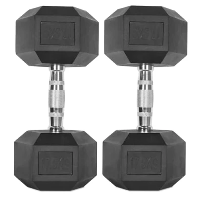 Hex Dumbbell Pair 2.5kg30kg Rubber Encased Cast Iron Weights for Strength Training, Home Gym, Fitness & Exercise Equipment Men Women (Black, 17.5KG Pair)