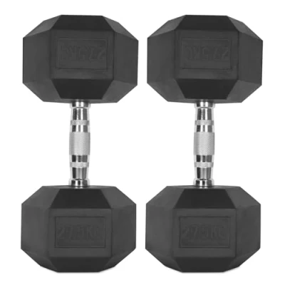 Hex Dumbbell Pair 2.5kg30kg Rubber Encased Cast Iron Weights for Strength Training, Home Gym, Fitness & Exercise Equipment Men Women (Black, 25KG Pair)
