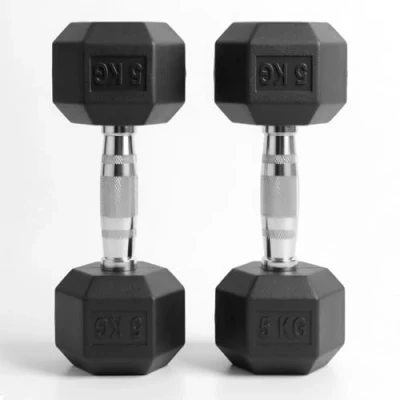Premium Rubber-Encased Cast Iron Dumbbells Solid cast iron core wrapped in durable rubber to reduce noise, prevent floor damage, and deliver long-lasting performance in any home or commercial gym. Ergonomic Chrome Knurled Grip for Secure Handling Precision-knurled, chrome-plated handles provide a firm, slip-resistant grip — ideal for high-intensity workouts, sweaty sessions, and safer lifting. Anti-Roll Hex Shape for Stability & Easy Storage Six-sided hex design prevents rolling between sets, enhances workout safety, and keeps dumbbells neatly in place on the floor or weight rack. Versatile Strength Training Weights for Any Workout Perfect for full-body routines, CrossFit, HIIT, bodybuilding, core training, rehab sessions, and home gym exercises from beginner to advanced levels. 5 kg Dumbbell Pair – Ideal for All Fitness Levels This versatile 5 kg weight is perfect for progressive overload, muscle toning, strength building, and athletic performance training. A balanced choice for beginners moving upward and experienced lifters adding precision work to their routines.