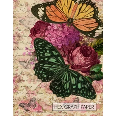 Hex Graph Paper Notebook: Victorian Butterfly Botanicals / Large 2 Inch Hexagons 8.5" x 11" 120 Pages Softcover Two Hexagonal ... Tessellations, Chemistry, Math and Quilting