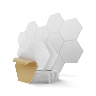 Hexagon Acoustic Panels Self Adhesive, 18 Pcs Sound Absorbing for Walls, Door, Ceiling, Felt Tiles Studio, Bedroom, Gaming, Recording, 12" X 10.5" 0.4", White