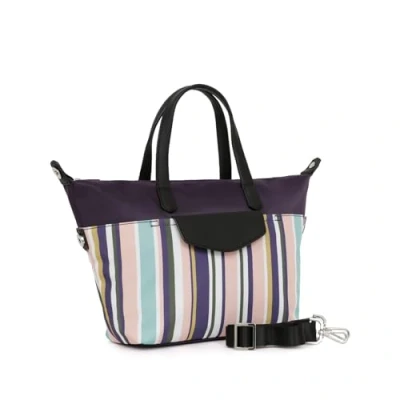 Hexagona Women's Paris Tote Calypso Collection Purple in Nylon Hand Carried Handbag Small Shoulder Bag, Bayadère/Violet, L : 38 x h 22 P 11 cm