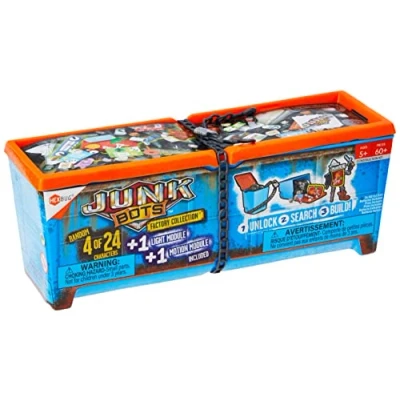 The JUNKBOTS Factory Collection has landed! Remove the plastic, break the chain, dump the junk, search for clues, and set your imagination free as you mix and match pieces to build unique characters. Included inside each Industrial Dumpster are simulated junk and trash for 4 unique characters, a module to light up your creations, and a motion module to motorize or create vibration with each robot move. Break the chain and dive into the JUNKBOTS Industrial Dumpster! With 4 unique bots, simulated junk, plus motion and light modules to get things moving, the JUNKBOTS possibilities are endless! Collectible robot characters. Interchangeable / mix and match parts. Construction system. Surprise, blind box style packaging. Includes 2 Power modules (1 light and 1 motion) to add excitement and function. Build per suggested plan or make up your own character. You never know what parts you'll get to build your own motorized figure or static robotic model. A great gift for birthdays and holidays - Get kids a break from video games and begin the latest creative construction experience from old and new parts! Laugh out loud (LOL) and surprise your friends when you open each new HEXBUG JUNKBOTS Factory series trash can or dumpster. HEXBUG JUNKBOTS Factory Collection Industrial Dumpster is compliant with CPSIA standards. Ages 3 years and up. This robotic toy set is battery powered. Batteries included are LR44 button cells. The more you collect from other bins and dumpsters, the more you can create! The universal socket system stimulates creativity and endless possibilities as you connect, dismantle, and reattach the modular junk pieces. What is HEXBUG? HEXBUG is a brand of tech toys for kids with roots in creating innovative children's toys based around insects. Now, HEXBUG has a range of entertaining kids toys and other creative products to help aspiring children cultivate a love for STEM and STEM products., Manufacturer: Innovation First Trading SARL