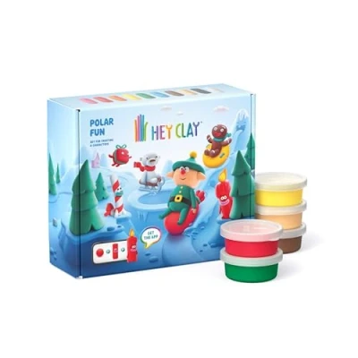 HEY CLAY Polar Fun Set Colourful Modelling Clay, Air Dried, 15 Cans and Tools Seasonal Creative for Children from 3 Years