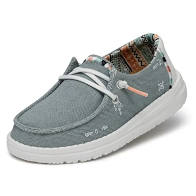 Festival vibes aren’t just for coachella, bring a little boho to her days with these chambray wendys, made for high style and serious fun, they have easy on easy off laces, an eva outsole and extra foam underfoot, embroidered stitching at the heel adds extra smiles to every step Lightweight comfort: all the benefits of a boot with the feeling of a slipper, hey dude shoes have a ultra lightweight molded outsole integrated with a removable foam insole that offers the ultimate cushioning and comfort for your feet The perfect fit: our wide-fit construction and supple upper designs let your kids toes feel comfortable, our girls boots are a go-to's for all occasions, whether relaxing on the weekends, hanging with friends, or rocking at school or work Travelling and on the go: hey dude shoes are designed with an easy-on system, which makes them super easy to slip on, with the perfect amount of hold and support for your child's feet Sizes and colors: in between sizes - for a tight fit, go one size down and for a looser fit, go one size up, there may be a slight variance in the product print, color, or application due to different manufacturing methods and the resolution of your mobile and computer screens