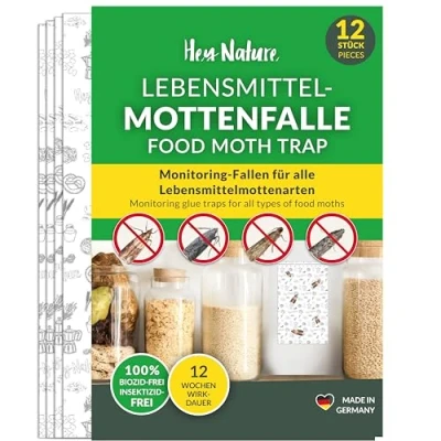 ✔ MAXIMISED ATTRACTION: Our moth sticky traps are equipped with a special pheromone (sexual attractant). They attract male moths to detect infestations and prevent them from reproducing. All common kitchen pantry moths are trapped. ✔ NON-TOXIC & ODOURLESS: In contrast to moth killer spray, moth balls, moth strips, moth papers, moth repellent spray and other anti moth products , our moth pheromone traps are 100% insecticide-free and odourless. ✔ EASY TO USE: Simply stick the pantry moth trap discreetly in the cupboard and you've taken the first step towards controlling the food moths in your kitchen. Moth protection made easy! ✔ LONG LASTING EFFECT IN AN ECONOMY PACK: ONE Hey Nature moth stop trap attracts pantry moths such as the Indian Meal Moth, Mediterranean Flour Moths, Tobacco Moth and Almond Moths for up to 12 weeks. ✔ GERMAN PRODUCT: Top quality powerful pantry moth killer from the German pest expert with an extra large glue surface - the moth traps sticky surface attracts and catches male moths.